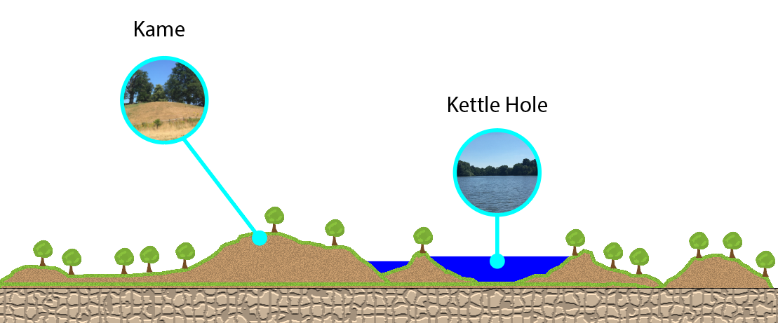 Surface debris left on top of the glacier forms mounds near the kettle holes known as kames. The kettle holes are so prolific that there are dozens of them over Shropshire. Today these lakes are used for recreation, water sources for agriculture and perhaps most importantly of all as nature reserves for wildlife. Many are open to the public where one can take a walk and view the remains of Shropshire’s glacial past.